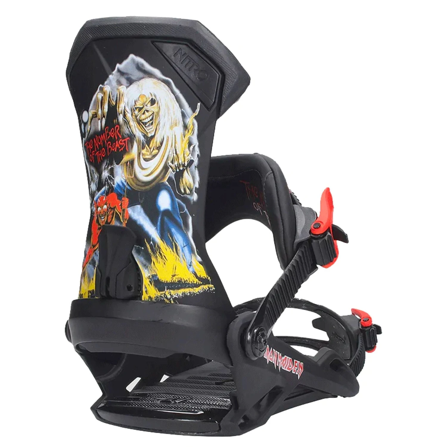 The limited edition Nitro Team x Iron Maiden is a true all mountain, versatile powerhouse that offers you everything you could possibly want in your bindings. With an ideal blend of comfort, response, and support, you can take this binding to any sort of terrain on the mountain and it will handle it with ease. This do-everything binding is packed full of tech to make it the perfect blend of response and comfort; a mid-stiff highback, supportive and comfortable air dampening and extra-durable straps. Once you try these bindings you will absolutely see why these are worthy of the ‘Team’ moniker and never again doubt your bindings in any conditions.
